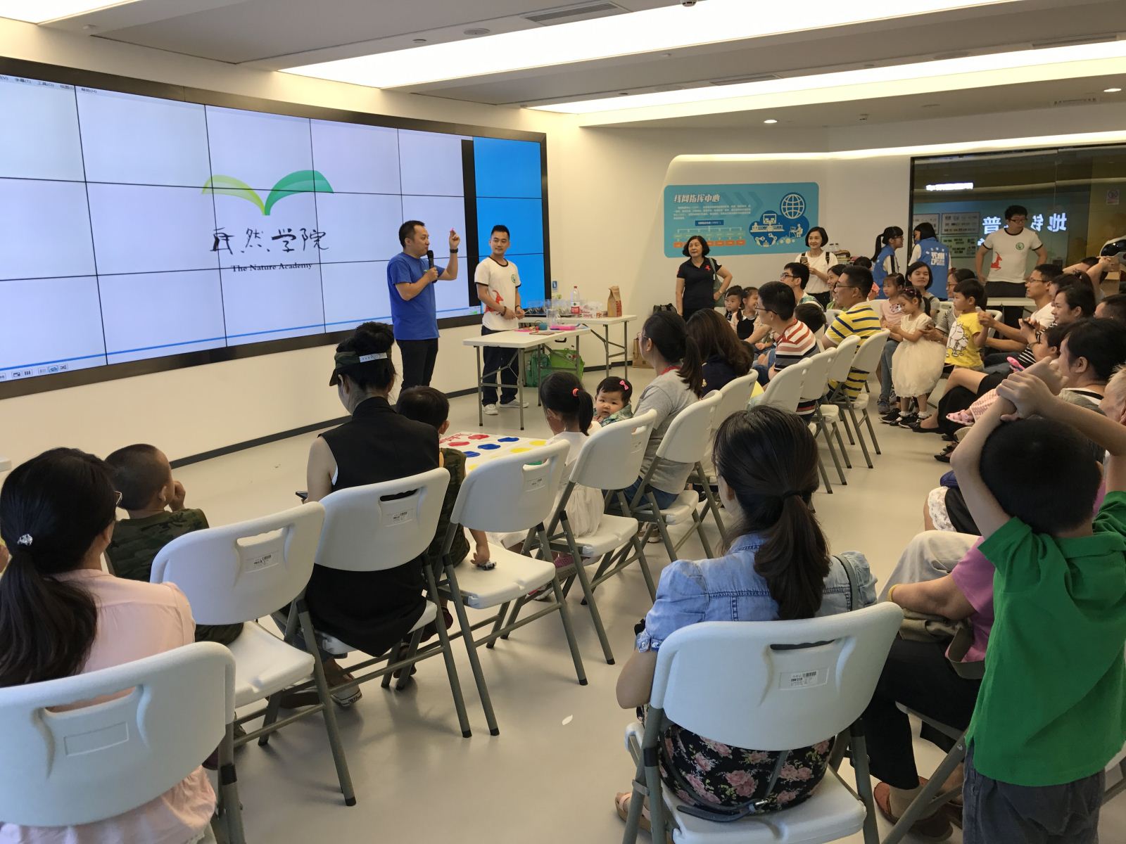 民众与环保大咖(自然学院、广州市绿点公益环保促进会)来个趣味环保分享会,收获“将电视屏幕调暗一点能节能又护眼”、“将空调调高一度能节电百分之七”等实用环保小知识,并参与了激烈的有奖互动问答。