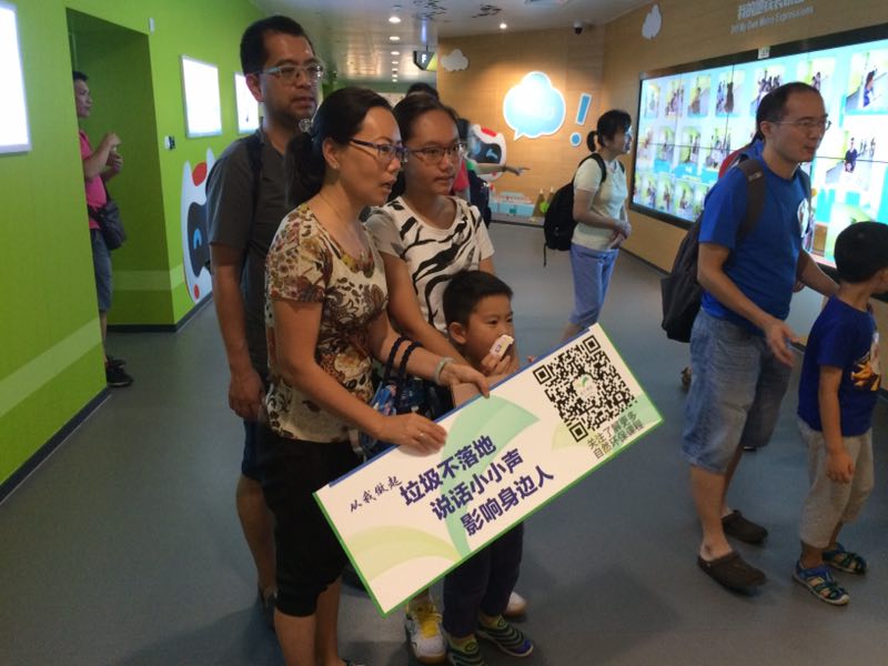 地铁博物馆二楼的电子拍照墙,共同宣读“垃圾不落地、说话小小声、影响身边人”的环保宣言,表达践行绿色低碳生活的决心,孩子和父亲在这留下环保宣传足迹,一起为这个即有趣又有意义的父亲节印刻回忆。